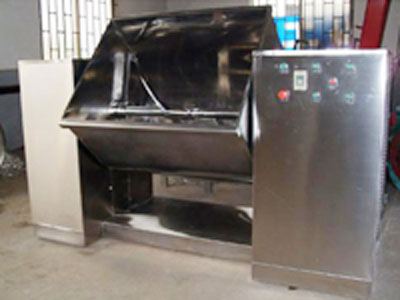 混合槽為U形體,采用不銹鋼制造,內裝攪拌槳,它橫臥在攪拌減速器與倒料減速器上。