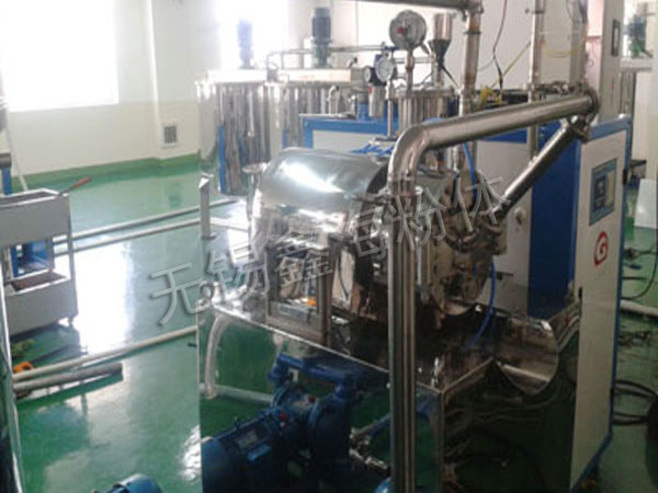 超細研磨機概述: 超細研磨機對于研磨大批量物料來說是為經濟的選擇,相對于其它研磨設備,設備的投入與磨介的選擇成本都低,另外該機型的優點是可以得到比其它機型細窄的粒度分布,粉碎細度可達0.5微米以下,能夠處理大量的料漿,還可以在研磨過程中隨時向預混缸內加入物料細組份,并且漿料經過研磨室的時間是有短短的15/25秒,可以得到精確的溫度控制。 超細研磨機結構特點: 研磨盤可以分為偏心,三角凸輪或圓型結構,按一定順序排列,研磨介質分布均勻,研磨效率高,產品細度要達到微米或納米級,分離系統采用間隙分離器,過流面積大,分離效果好,設備壽命長,帶強制冷卻液的雙端面機械密封組件,密封效果好,運行可靠,替換研磨桶和轉子,可以改裝成大流量循環砂磨機,用來研磨細度要求高難分散的材料或對溫度敏感的產品,筒體和研磨盤選用氧化鋯以滿足客戶的質量要求。 超細研磨機工藝流程: 加料泵將預分散的材料送人研磨桶,研磨筒內裝有研磨介質,磨細后的物料經動態分離器排出,視產品細度不同,可采用單臺連續或多臺串聯連續研磨工藝。 |